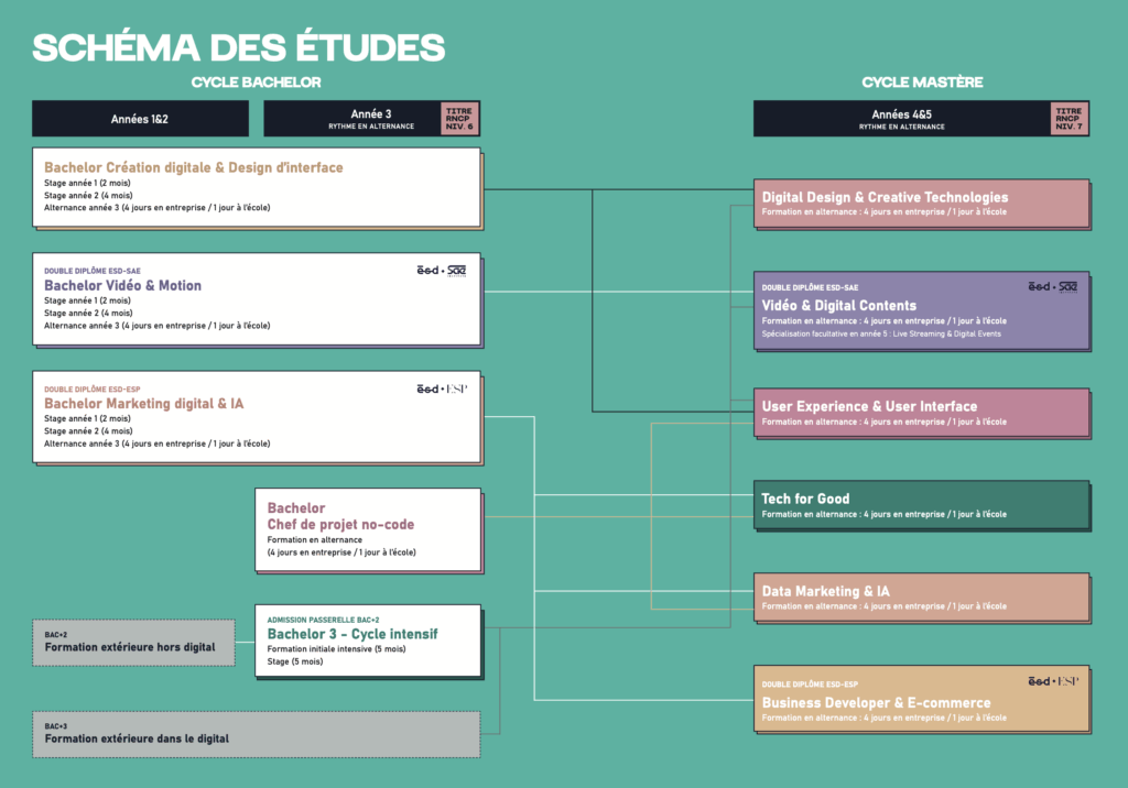 Cette dernière année permet d’obtenir un double diplôme Bachelor ESD-ESP, reconnu par les professionnels du secteur, de Titre RNCP39974 Responsable de projet webmarketing et communication digitale.